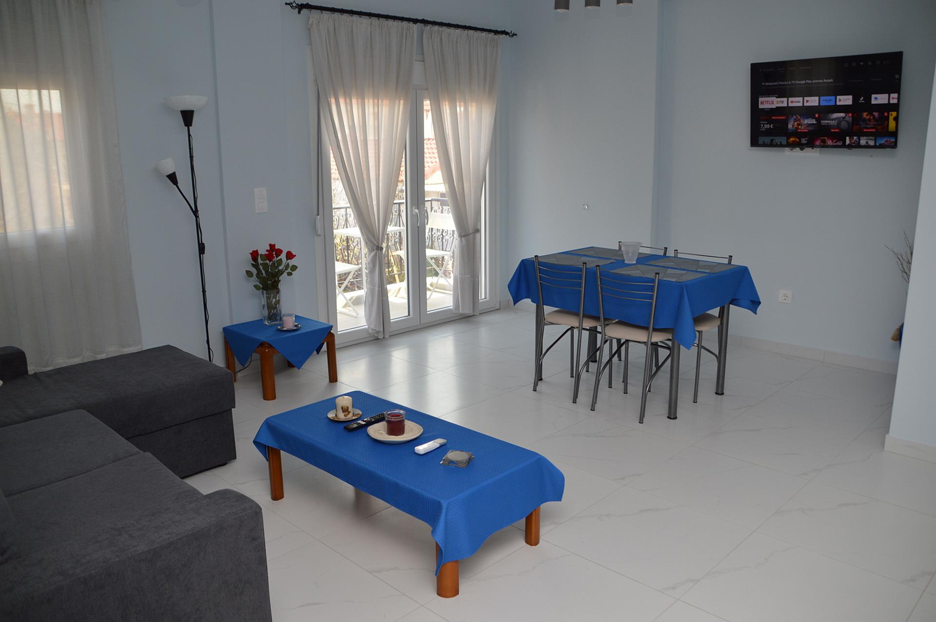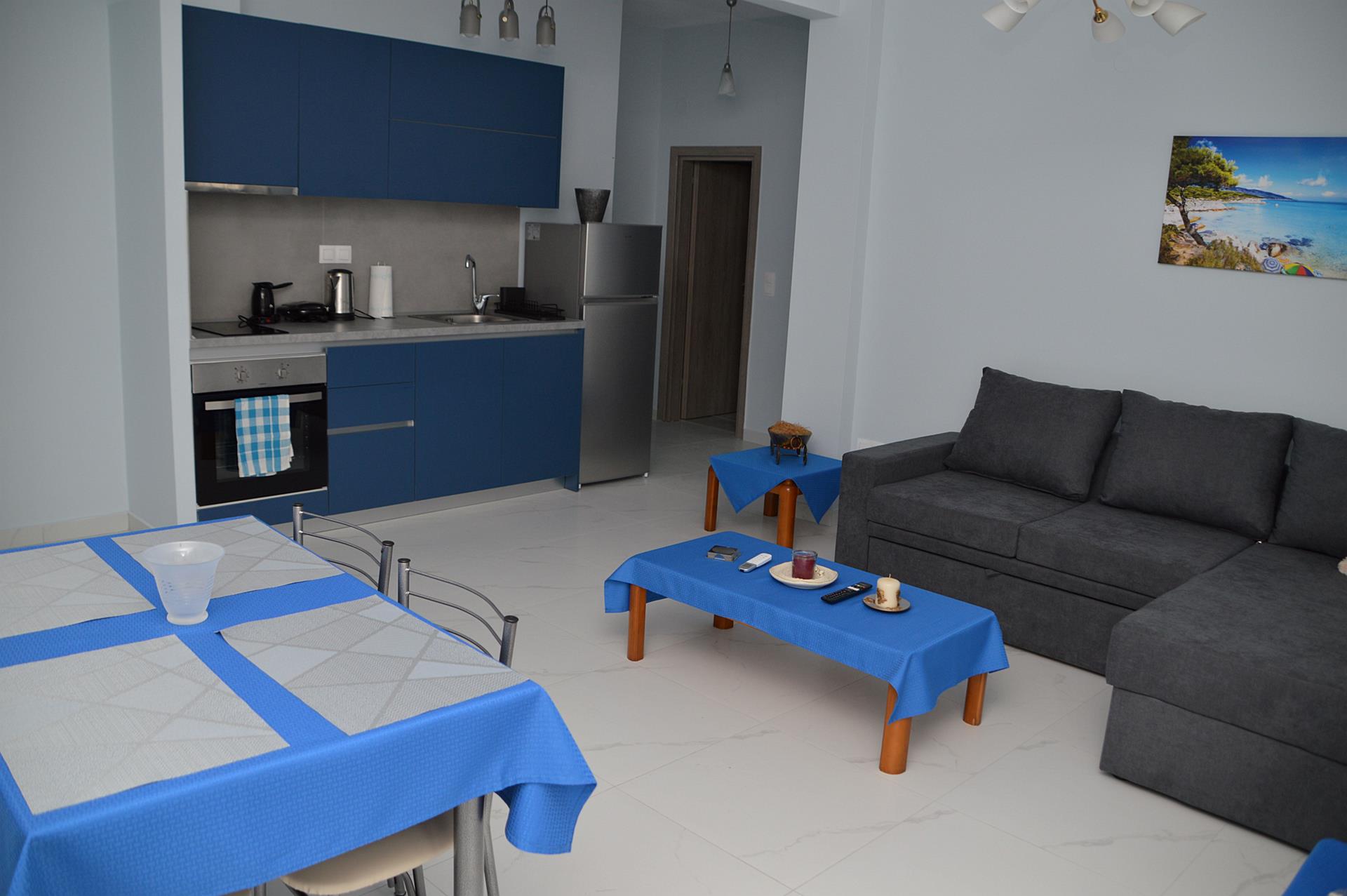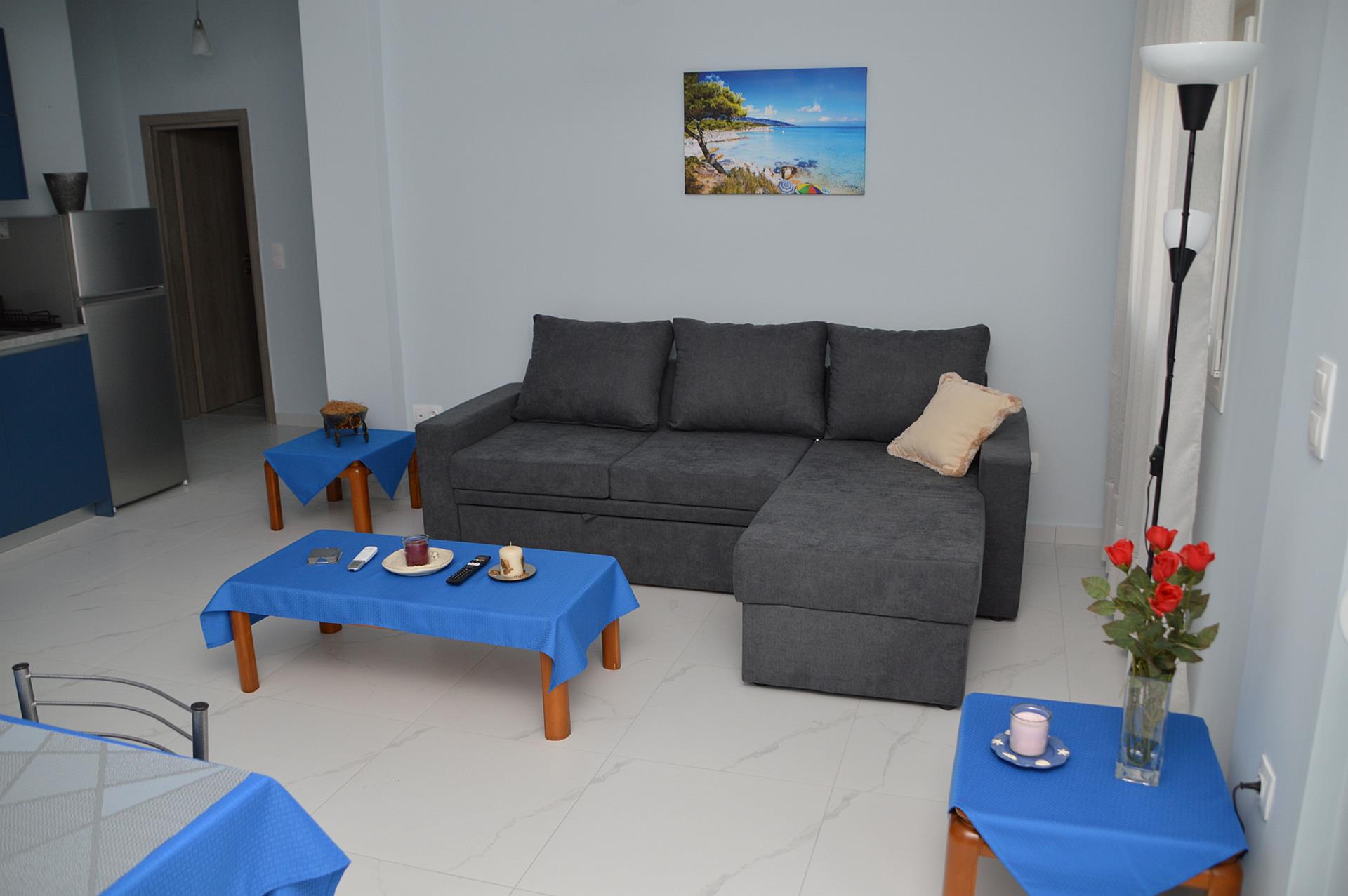 Welcome to our cozy and inviting one-bedroom apartment in Nea Flogita, ideal for couples or small groups. This tastefully decorated apartment offers all the amenities you need for a comfortable stay.