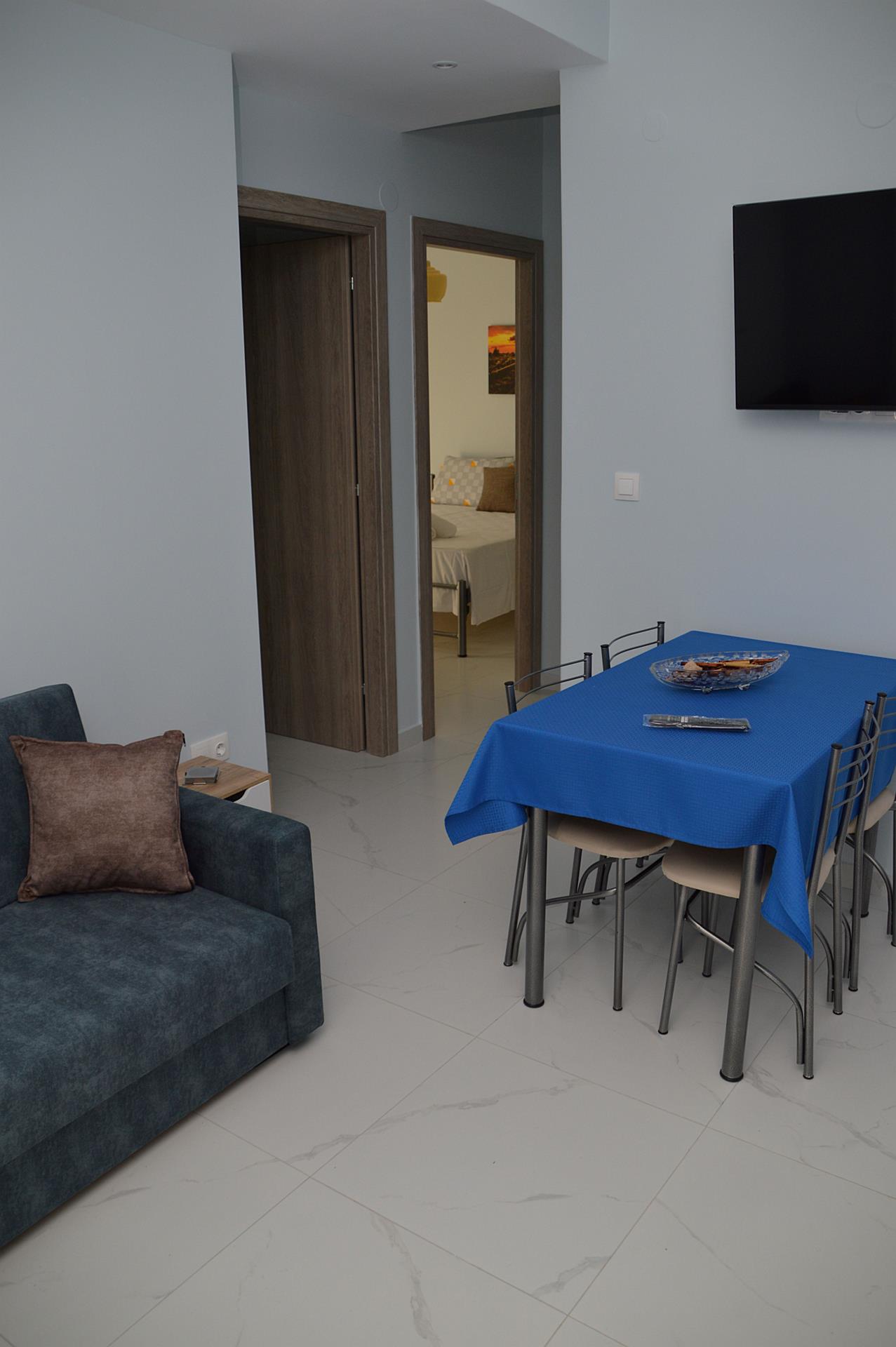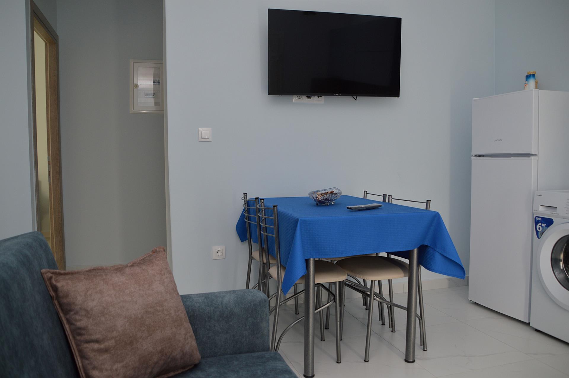 Welcome to our spacious and comfortable two-bedroom apartment in Nea Flogita, ideal for families or larger groups. This beautifully decorated apartment offers all the amenities you need to feel at home.